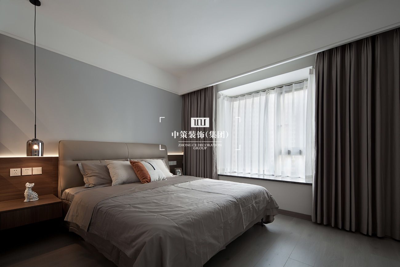 ④客厅:客厅搭建了中空区域,整体架构规整,视野开阔明朗。以简约为基调,把纯粹的光感与体块秩序融入各个场景,挖掘生活的多种可能性。通过色彩与质感来整合空间关系,营造富有逻辑的美学叙事,激发出清、简、静、雅的气质,引导人们慢慢感知空间与时间。